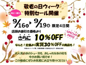 9/16㈫~9/19㈮の4日間「敬老の日ウィーク」